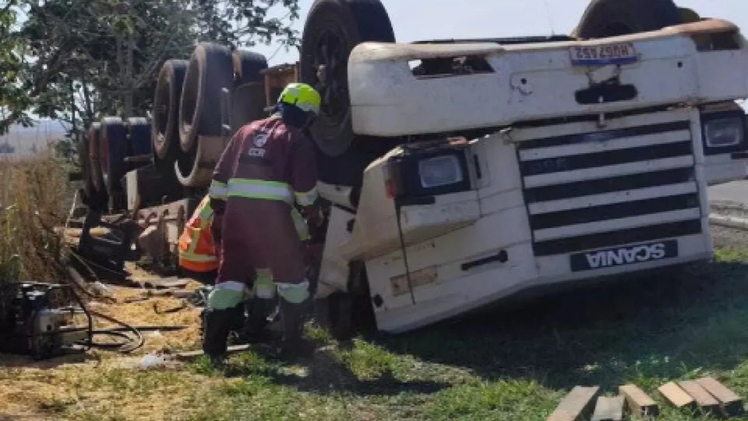 Motorista morre após carreta carregada de milho capotar na BR-163 entre Naviraí e Juti