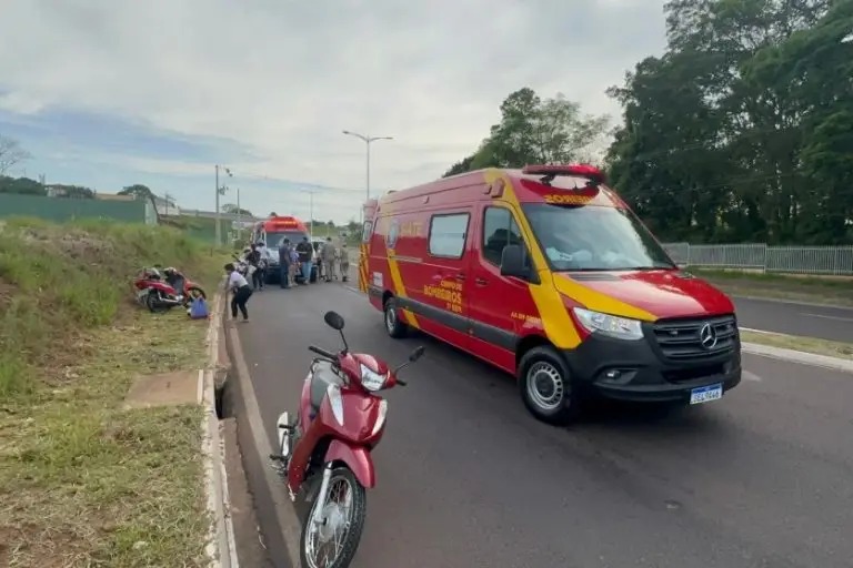 Motociclista fica ferida ao escorregar em óleo na avenida Portugal