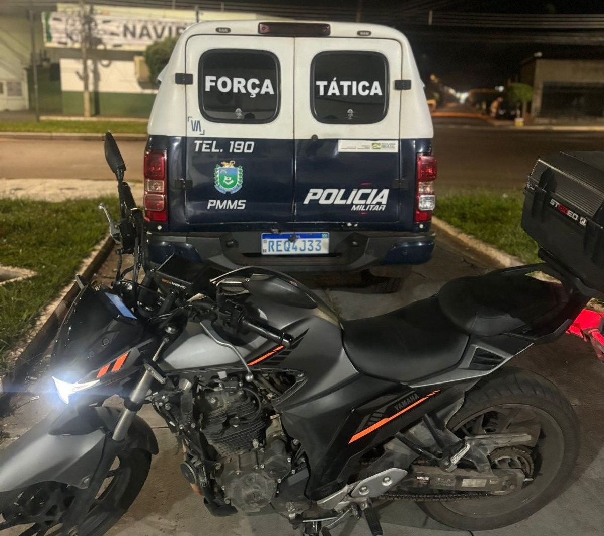 Força Tática apreende em Naviraí motocicleta com registro de roubo e furto de Curitiba/PR"