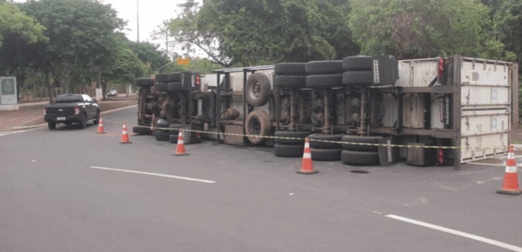 Vazamento de diesel é controlado após tombamento de carreta com carne em Campo Grande