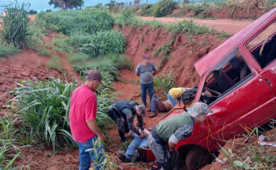 Pai e filho ficam feridos após capotagem na MS-134, em Batayporã