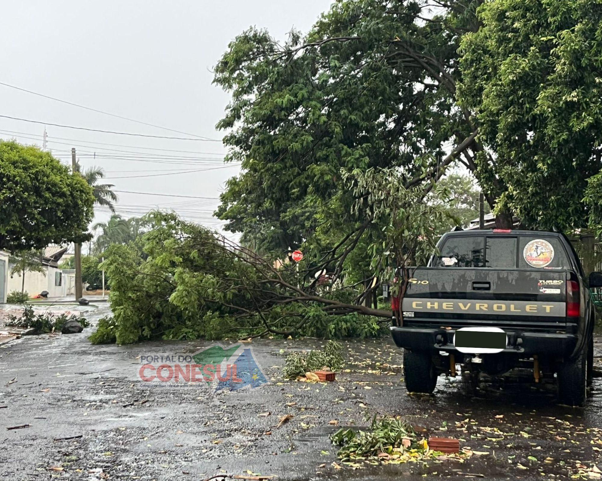 NAVIRAÍ - Temporal com ventos fortes causa queda de árvores