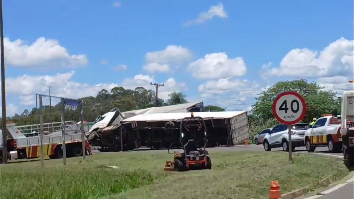 Tombamento de carreta interdita trecho da BR-163 em Campo Grande
