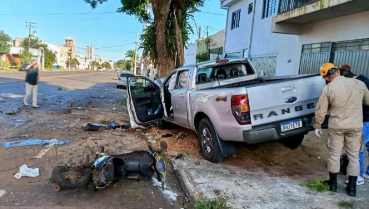 Acidente entre caminhonete e motocicleta deixa um morto em cruzamento de Ponta Porã