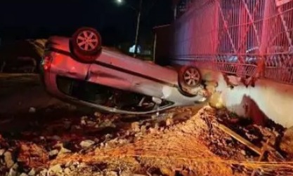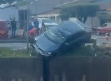 Acidente na Avenida Ernesto Geisel deixa carro pendurado