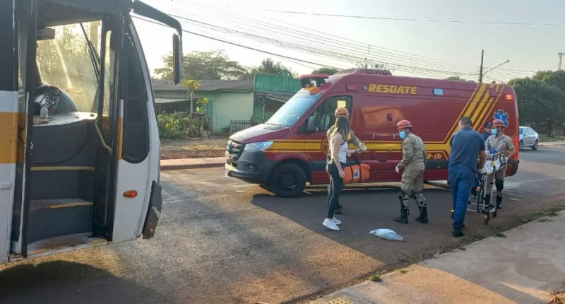 Ciclista de 85 anos fica em estado grave após atropelamento por ônibus escolar em Caarapó