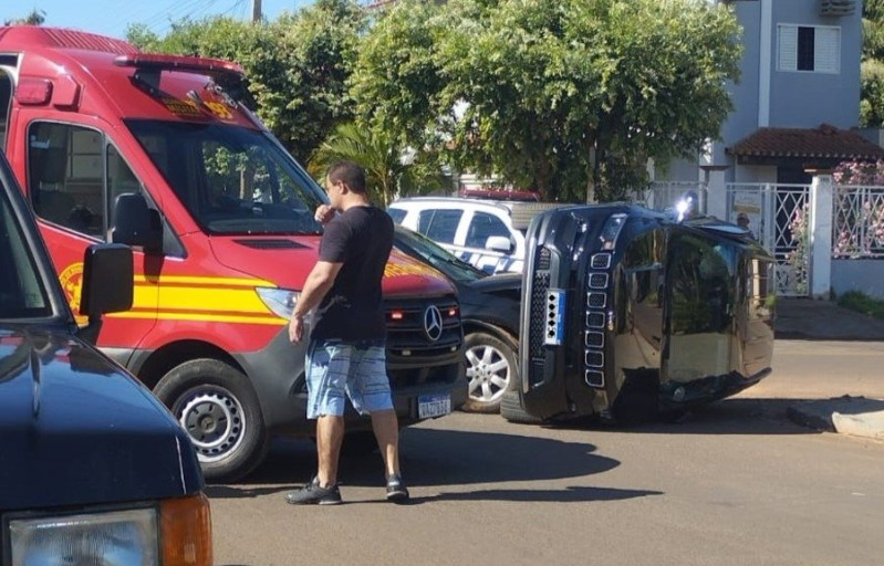Nova Andradina: Jeep tomba em cruzamento após ser atingido por Honda CR-V