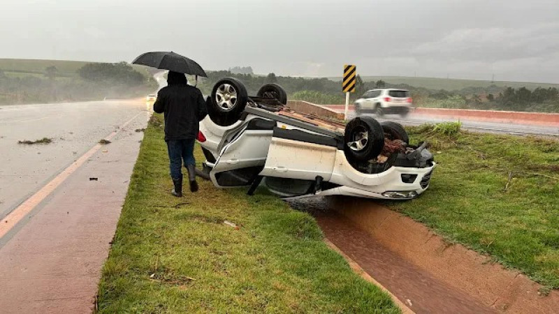 Nova Andradina: Motorista perde controle de direção e capota Fiat Toro