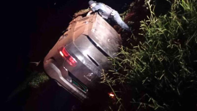 Durante fuga da polícia, motorista perde controle e capota veículo