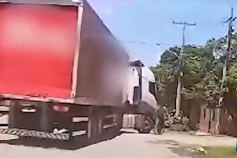 Ciclista é atropelado por carreta, rola entre pneus e escapa sem ferimentos