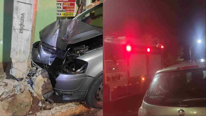 Motorista é socorrida por moradores após dormir ao volante e bater em poste