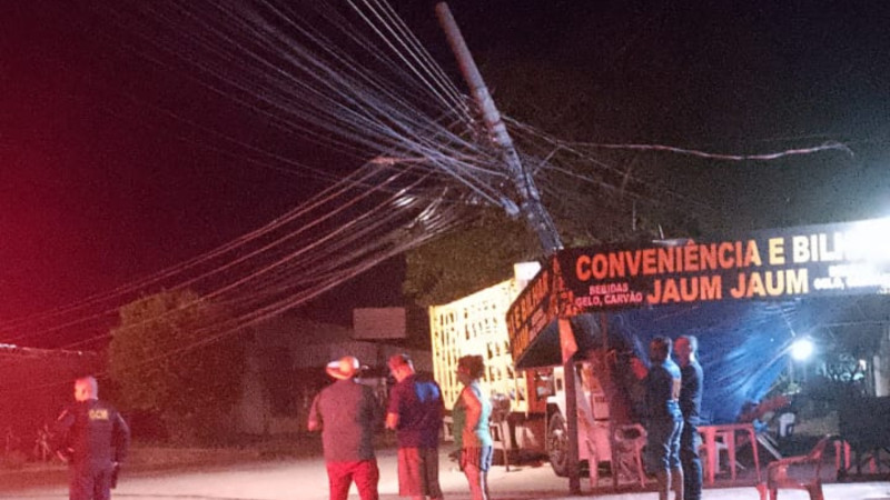 Motorista perde controle da direção e caminhão de gás quebra poste