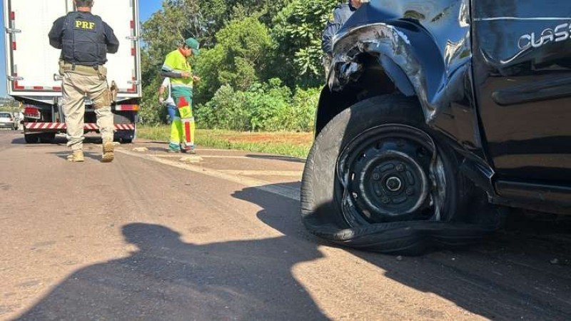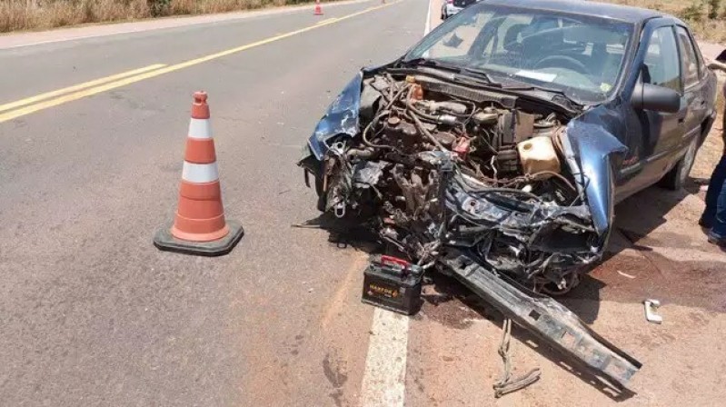 Jovens sofre ferimentos em acidente entre carro e caminhão