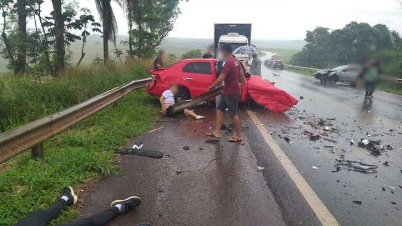 Acidente em cruzamento deixa motociclista morto e mulher gravemente ferida
