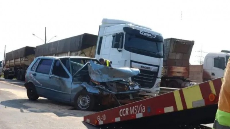 Uno tenta ultrapassagem proibida, bate de frente com guincho e motorista foge