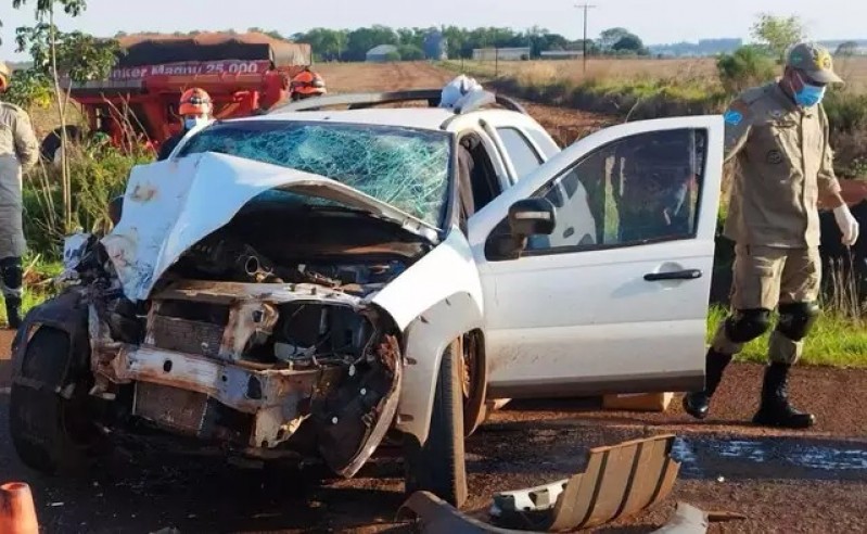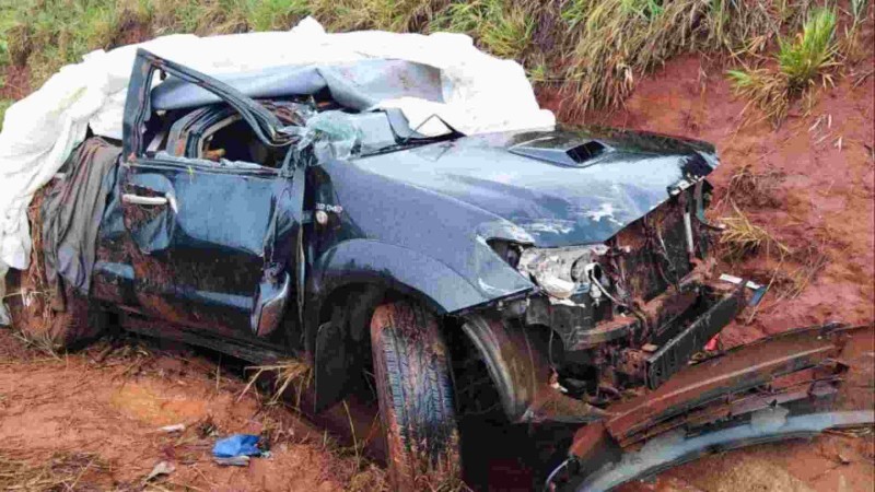 Idosos são socorridos com ferimentos após capotar caminhonete