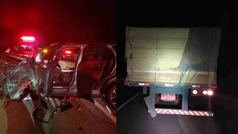 Acidente envolvendo carro e caminhão deixa duas pessoas mortas