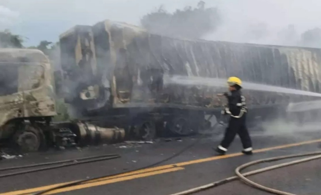 Incêndio atinge carreta frigorífica na BR-163 em MS