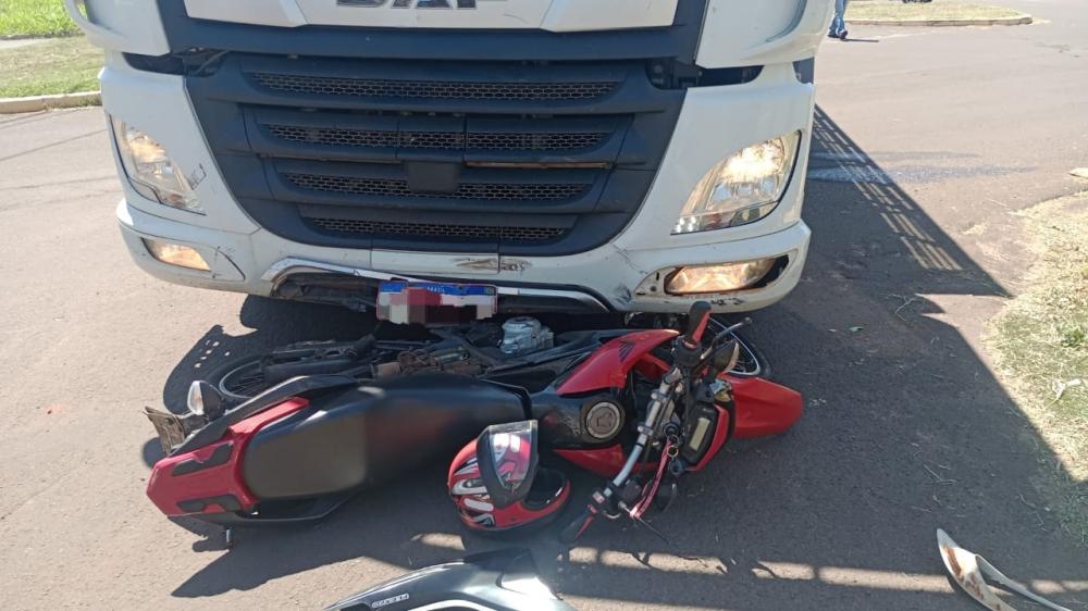 Acidente entre caminhão e moto deixa homem ferido em Naviraí