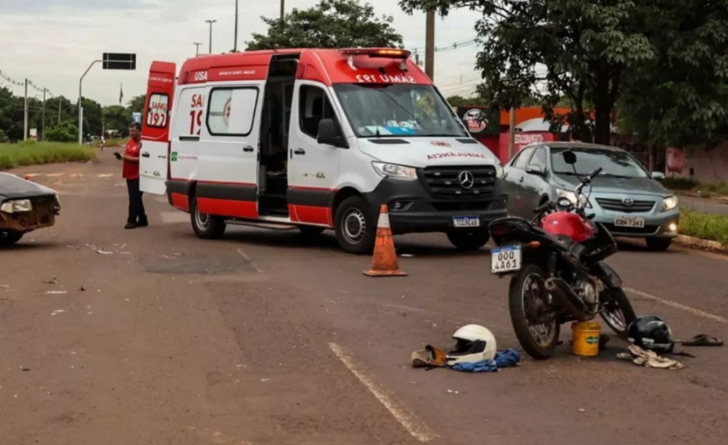 Acidente entre motocicleta e carro deixa dois jovens feridos em MS