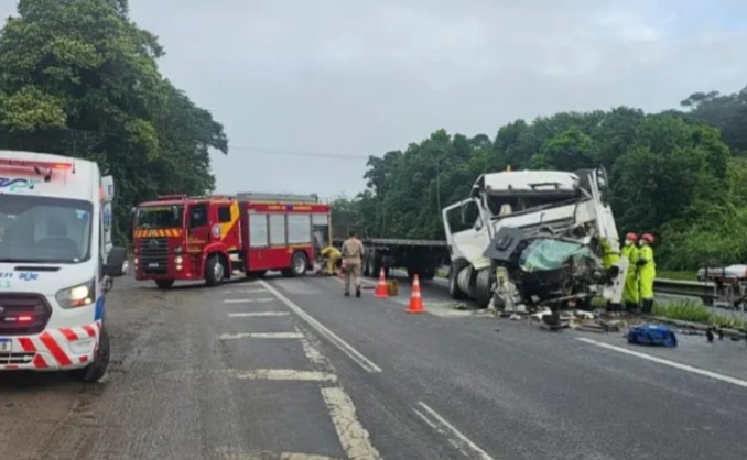 Colisão entre caminhões causa interdição e longa fila na BR-277