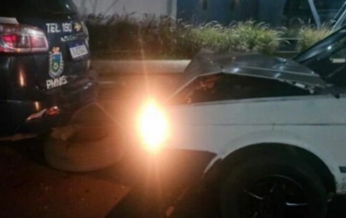 Homem embriagado colide com viatura da PM em Ribas do Rio Pardo