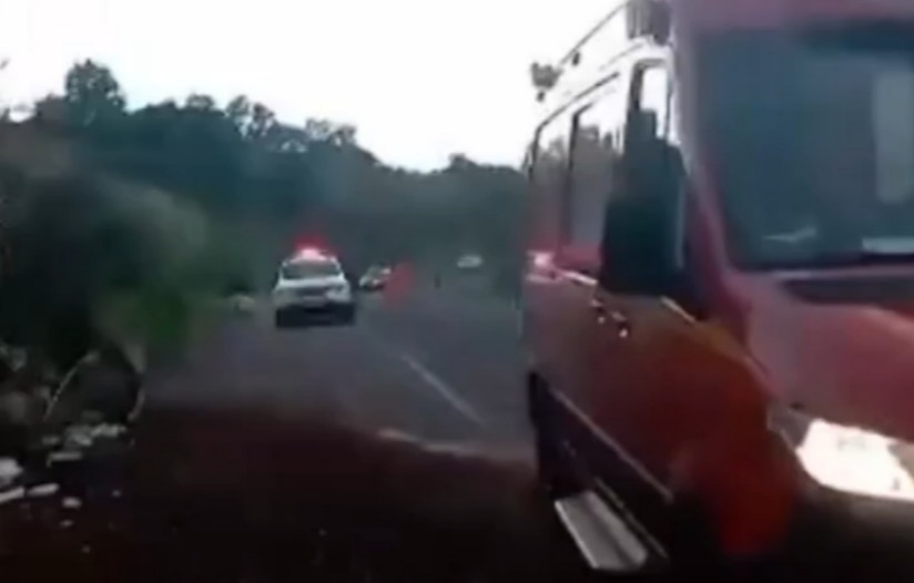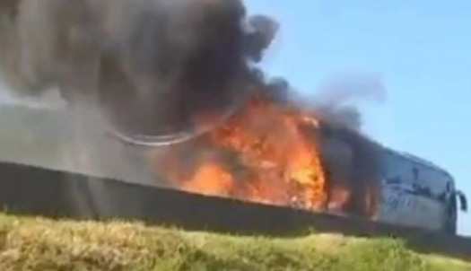 Ônibus de turismo pega fogo e bloqueia trânsito na BR-101