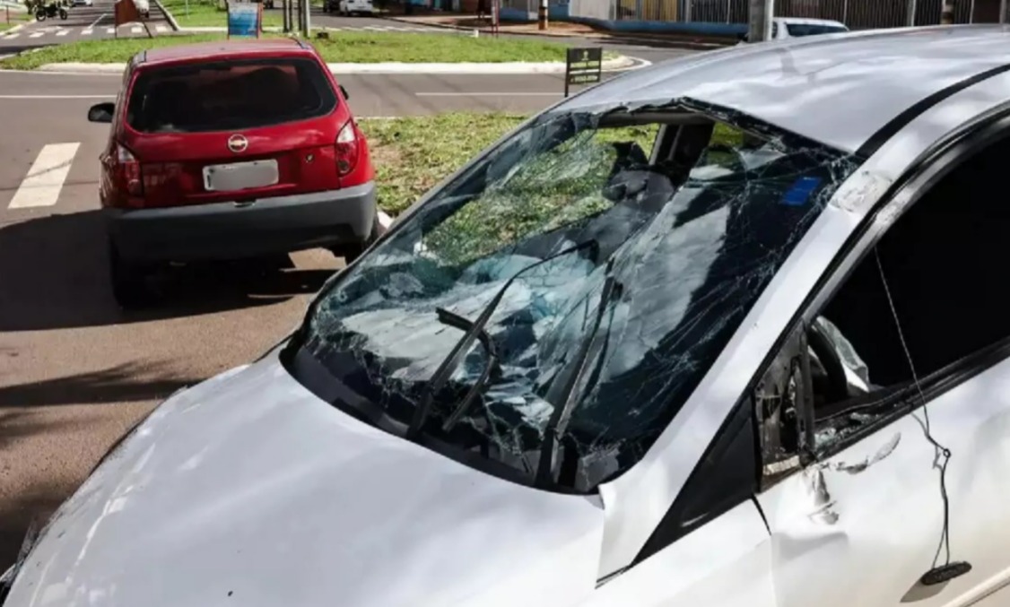 HB20 capota após colisão com Celta em rotatória no Carandá Bosque
