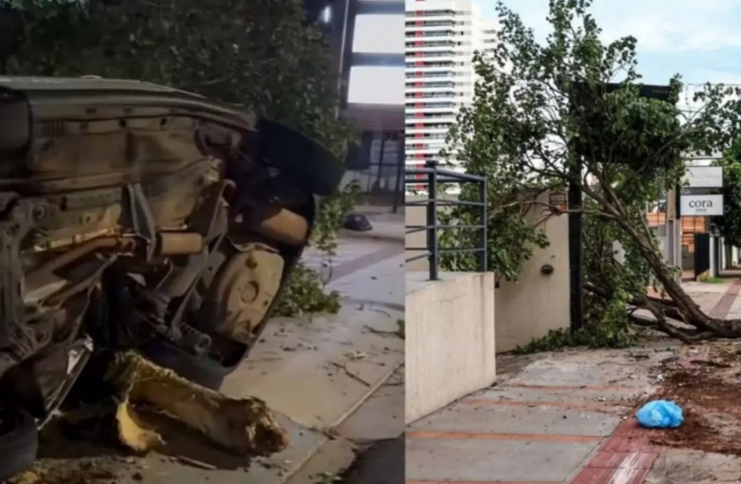 Motorista derruba árvore após perder controle do veículo em Campo Grande