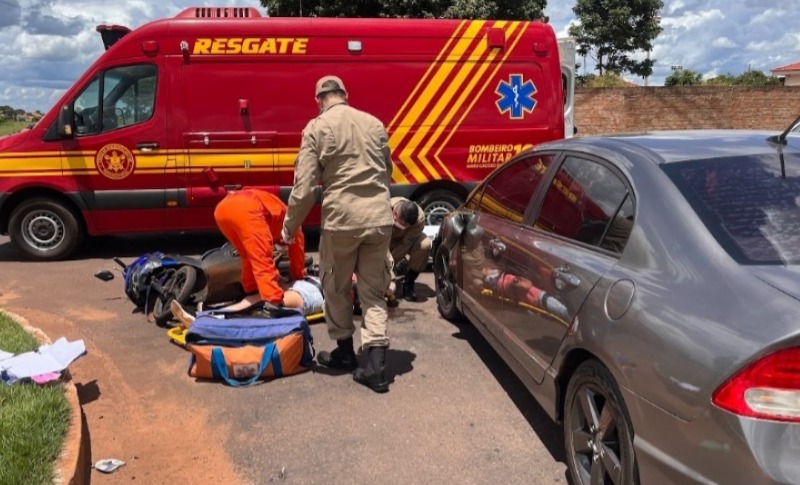 Colisão na rotatória de Ivinhema deixa motociclista ferida e moradores pedem mais segurança