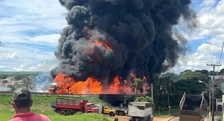 Colisão violenta entre dois caminhões provoca incêndio de grandes proporção na PR-092, em Arapoti