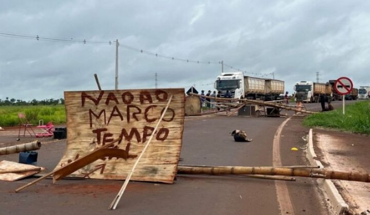 Bloqueio indígena mantém Anel Viário de Dourados fechado pelo segundo dia