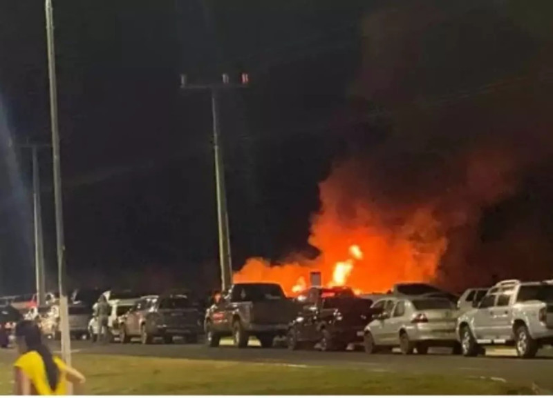 Carro pega fogo no estacionamento do Parque de Exposição de Costa Rica