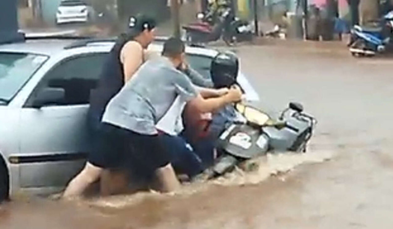 Chuva de mais de 90 milímetros causa inundações em ruas de Ponta Porã e Pedro Juan