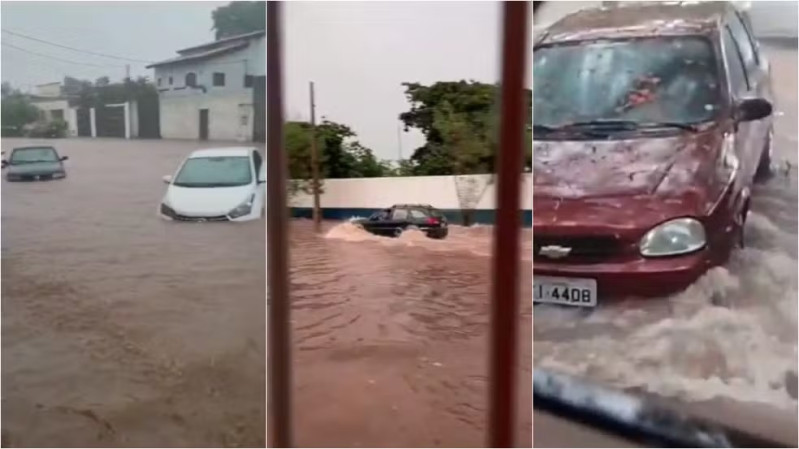 Chuvas na região pantaneira de MS deixam ruas alagadas