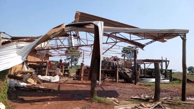 Nuvem funil assusta moradores e deixa rastro de destruição