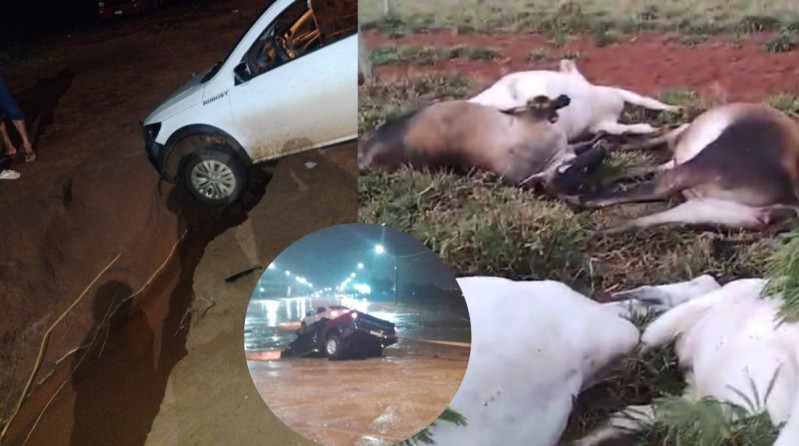 Temporal em Ribas abre cratera, 'engole' carros e mata 12 vacas prenhas