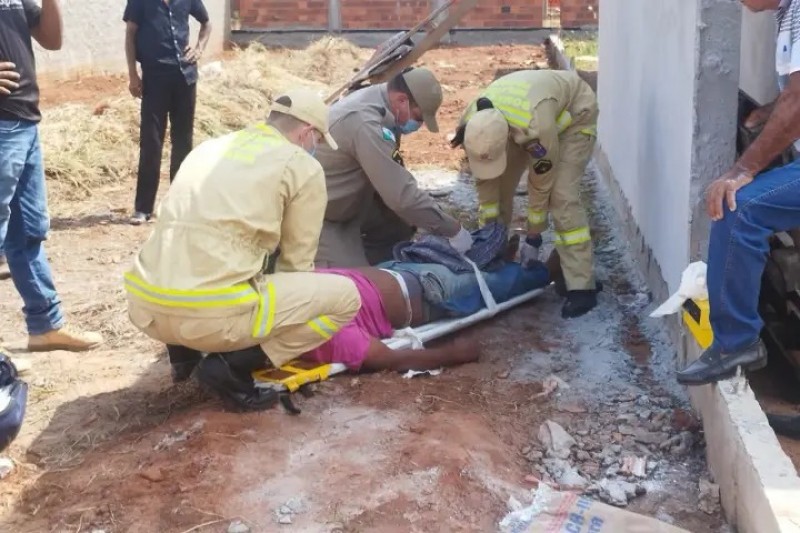 Trabalhador fica ferido após cair de escada numa construção