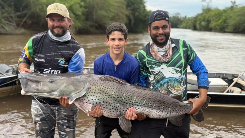 Menino de 13 anos pesca pintado de 1,75 m no Rio Dourados