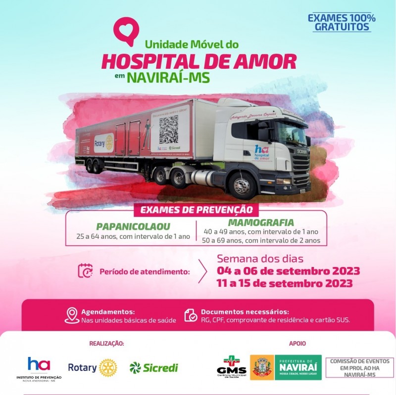 Unidade Móvel do Hospital de Amor levará exames gratuitos de prevenção do câncer a Naviraí