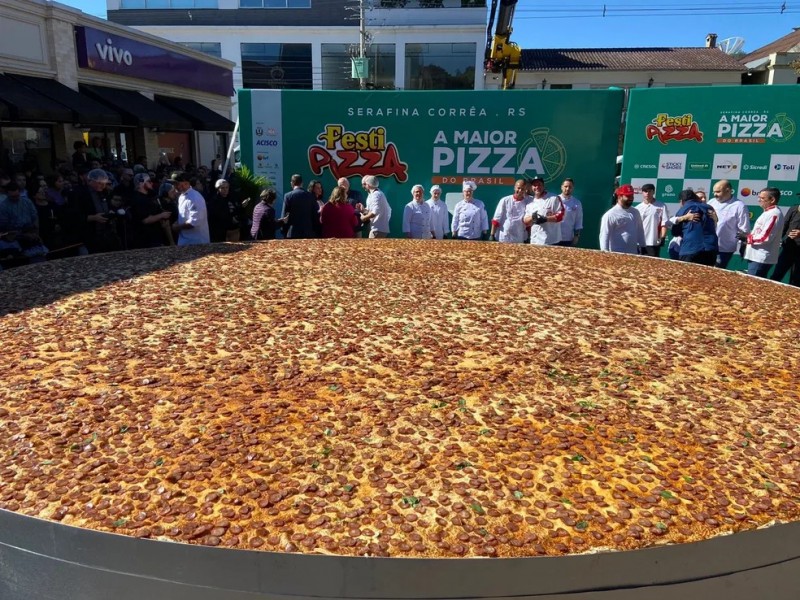 Município do RS bate recorde de maior pizza já feita no Brasil