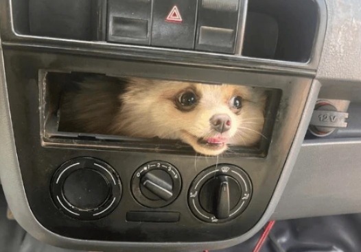 Cadela fica presa no painel de carro e é resgatada pelos bombeiros