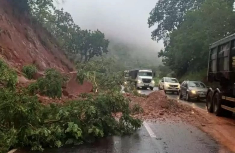 Deslizamento de terra e quedas de árvores afetam o trânsito na BR-364 em MT