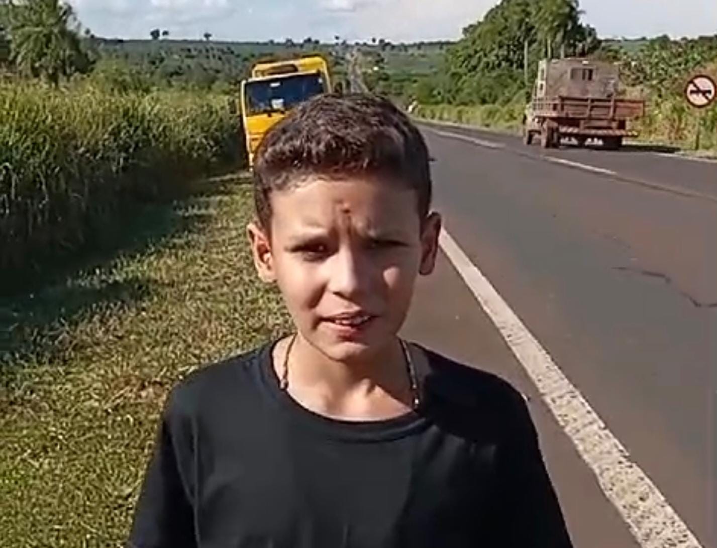 VÌDEO: Victor Kaiser, de 10 anos, clama por soluções para a BR-163, conhecida como Rodovia da Morte