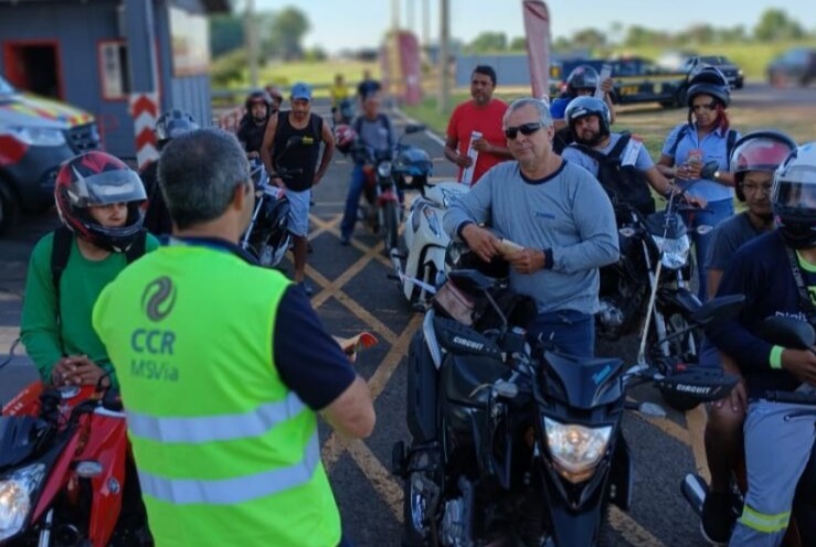 Campanha na BR-163 distribui antenas corta-linha e adesivos refletivos para motociclistas e ciclistas