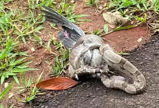 Cobra é flagrada engolindo ave no Parque dos Poderes em cena inusitada