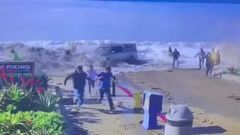 Forte onda ultrapassa faixa de areia, arrasta pessoas e deixa 8 feridos