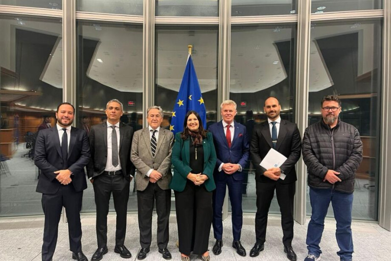 Com Eduardo Bolsonaro, Marcos Pollon chega a Bruxelas para reclamar do STF