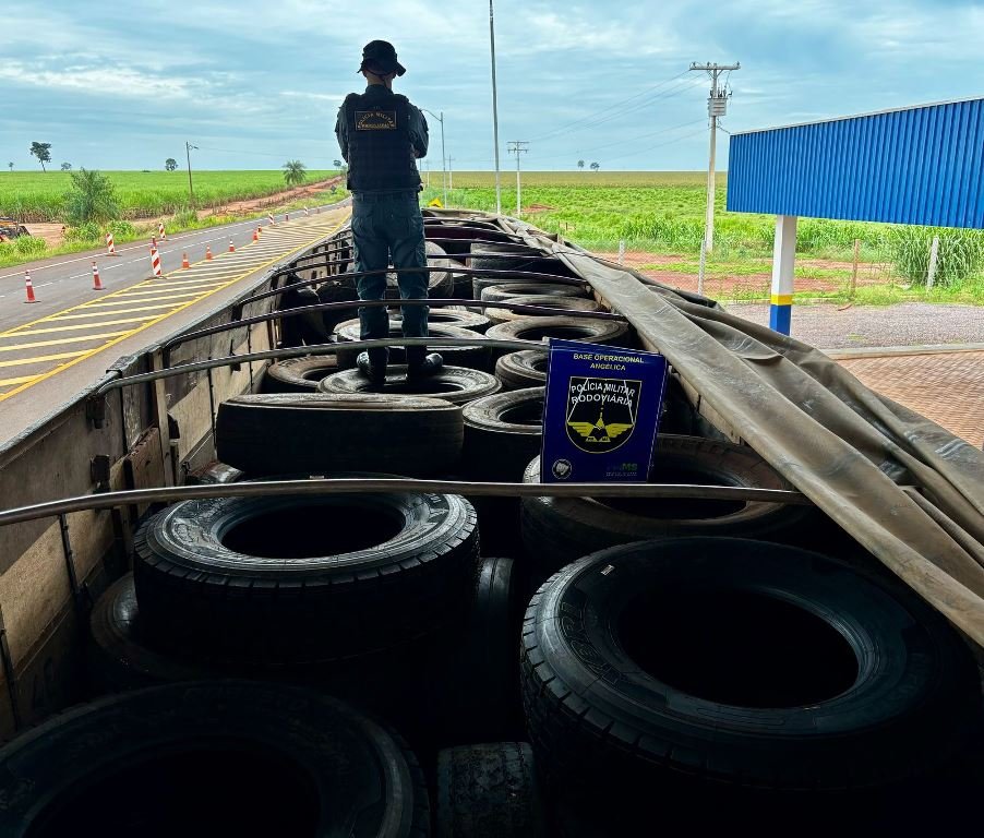Polícia Militar Rodoviária apreende carga ilegal de pneus em operação na MS-145