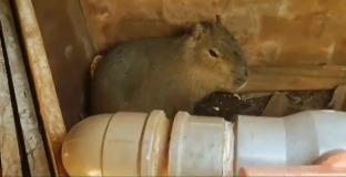 Capivara é capturada e devolvida à natureza pela PMA em Três Lagoas